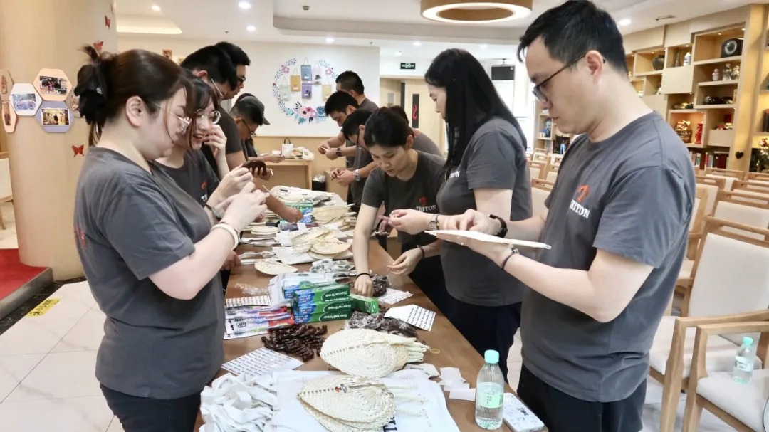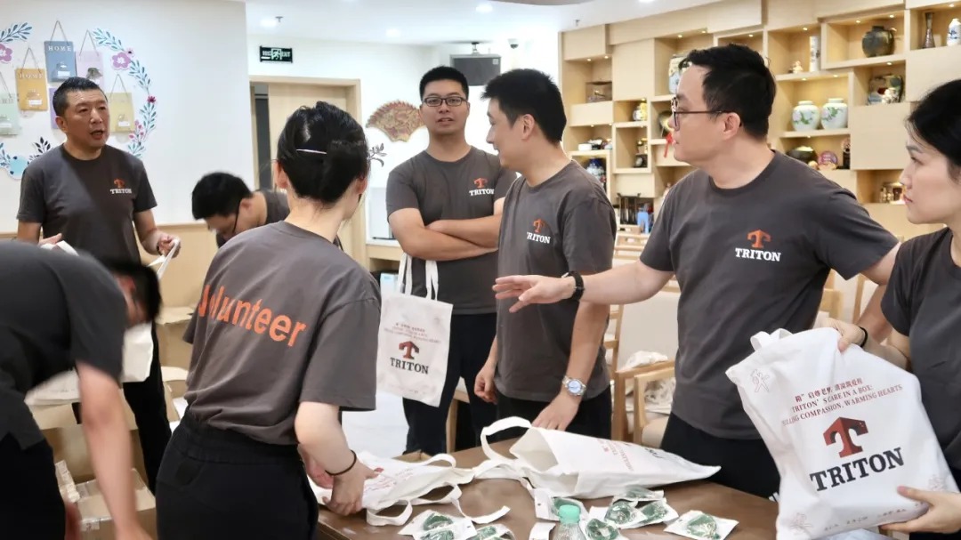 貼標(biāo)組志愿者將印有TRITON logo的貼紙細(xì)心粘貼在清涼物品顯眼位置,彰顯企業(yè)對活動的重視;分裝組則按預(yù)設(shè)組合,將物品整齊裝入定制帆布袋,每一份禮包都承載著對老人的誠摯關(guān)懷。
