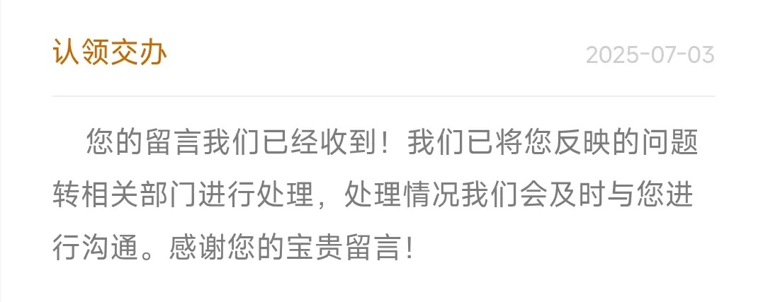 對此,官方回復(fù)已將其所反映問題轉(zhuǎn)交相關(guān)部門處理,目前該建議仍處于“辦理中”狀態(tài)。