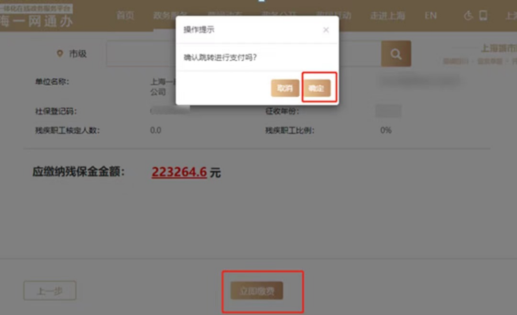 進(jìn)入“殘保金征繳一件事”,確認(rèn)應(yīng)繳費(fèi)額信息后,辦理殘保金申報(bào)繳費(fèi)。