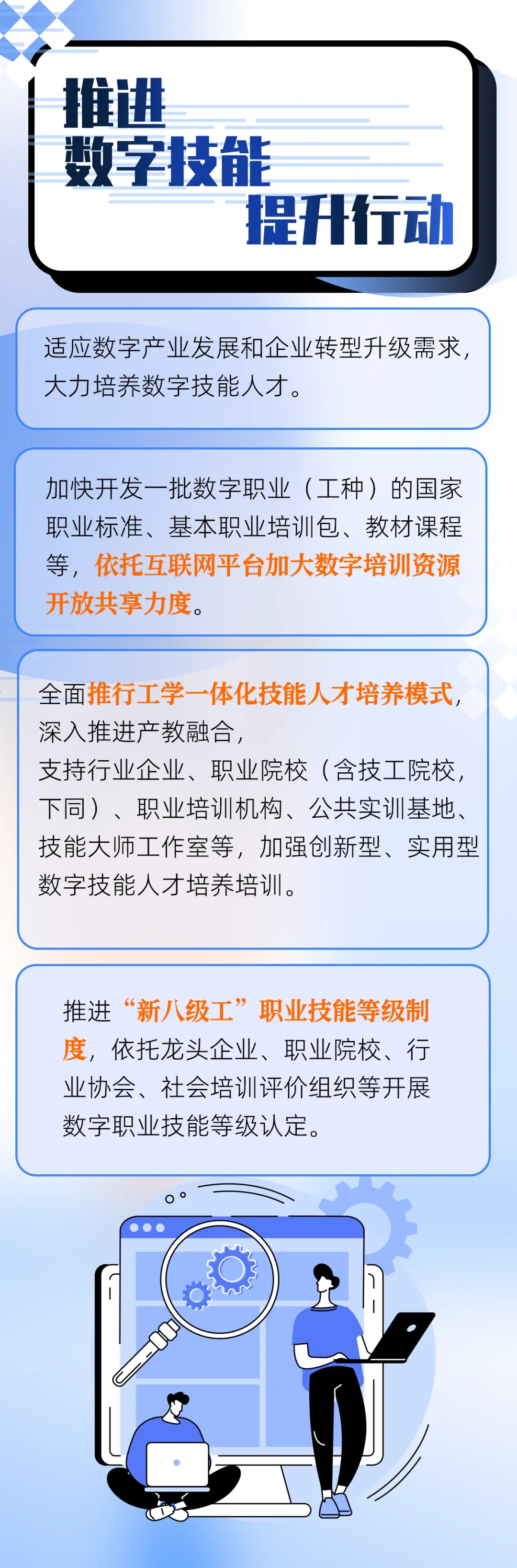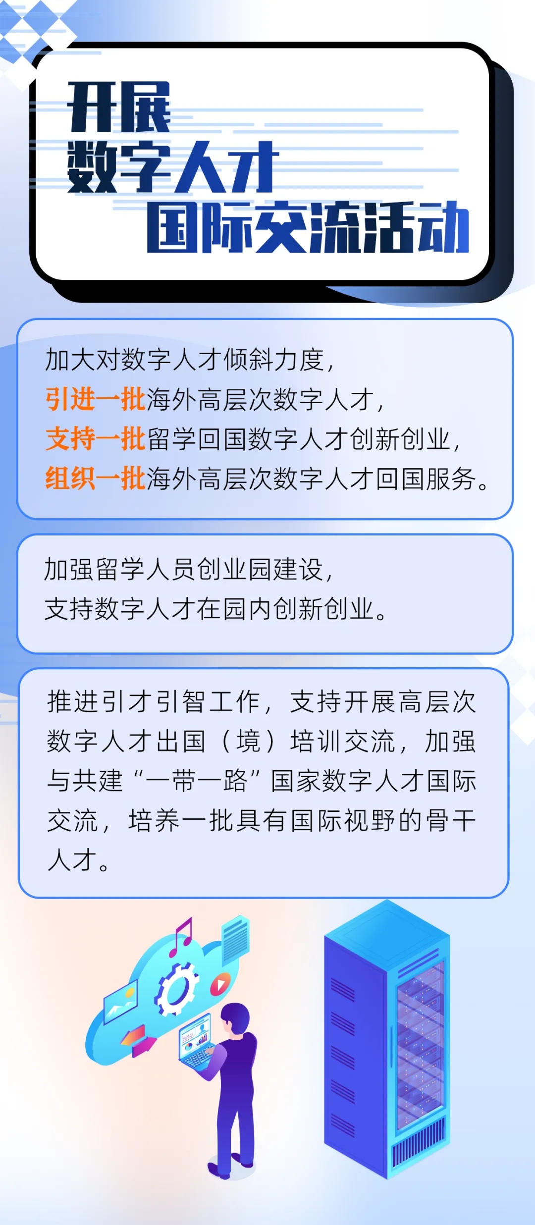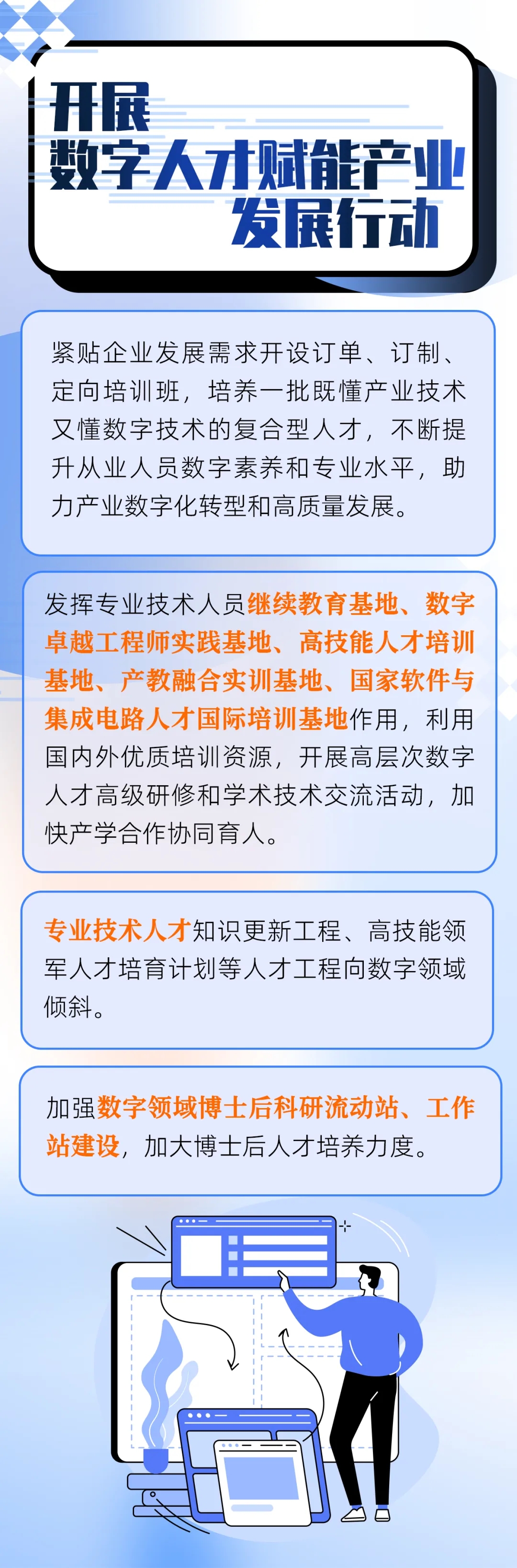 近日,人力資源社會保障部、中共中央組織部、中央網(wǎng)信辦、國家發(fā)展改革委、教育部、科技部、工業(yè)和信息化部、財政部、國家數(shù)據(jù)局等九部門印發(fā)《加快數(shù)字人才培育支撐數(shù)字經(jīng)濟發(fā)展行動方案(2024-2026年)》,緊貼數(shù)字產(chǎn)業(yè)化和產(chǎn)業(yè)數(shù)字化發(fā)展需要,用3年左右時間,扎實開展數(shù)字人才育、引、留、用等專項行動,增加數(shù)字人才有效供給,形成數(shù)字人才集聚效應(yīng)。