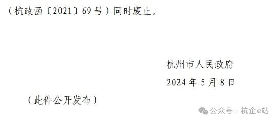 前發(fā)《杭州市人民政府關(guān)于調(diào)整市區(qū)最低工資標(biāo)準(zhǔn)的通知》(杭政函〔2021〕69號)同時(shí)廢止。