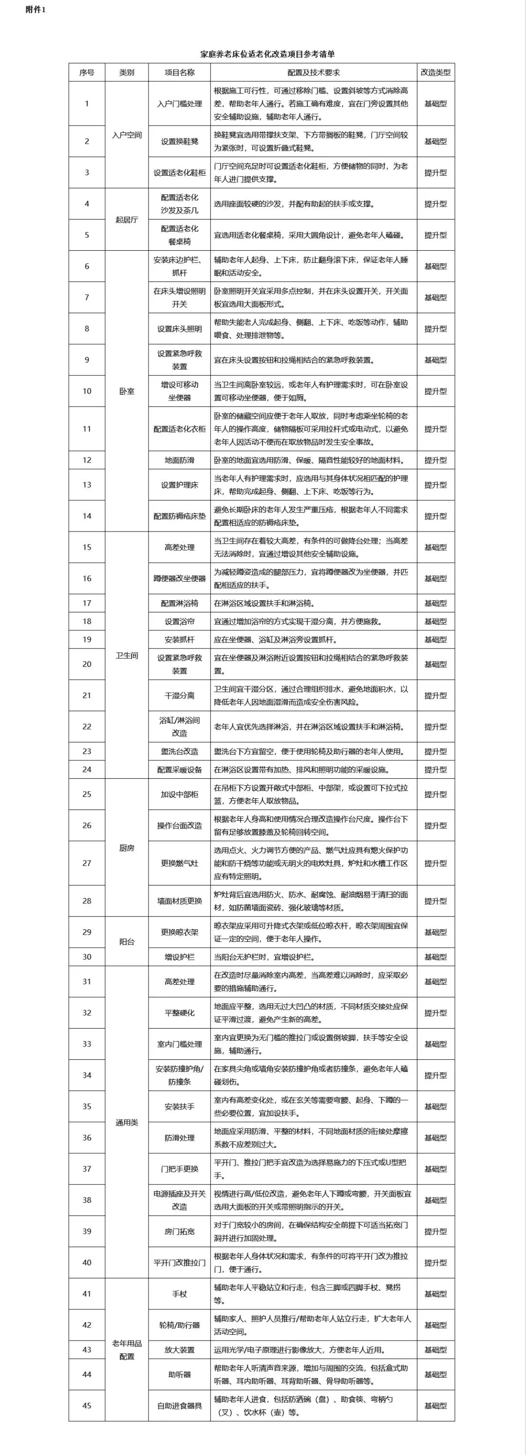 家庭養(yǎng)老床位適老化改造項目參考清單